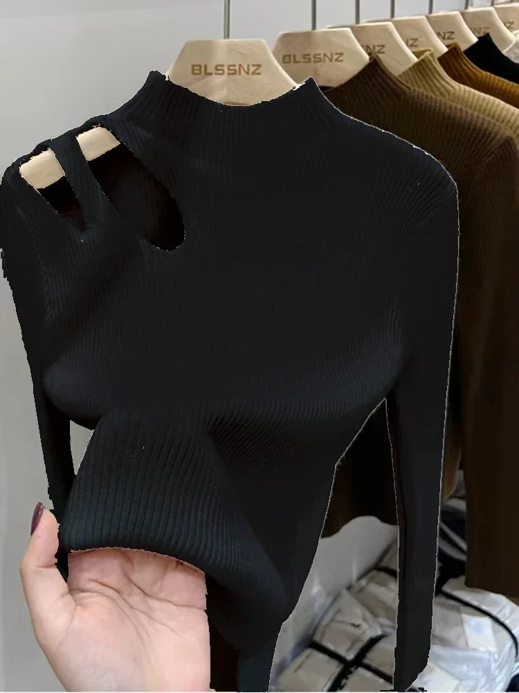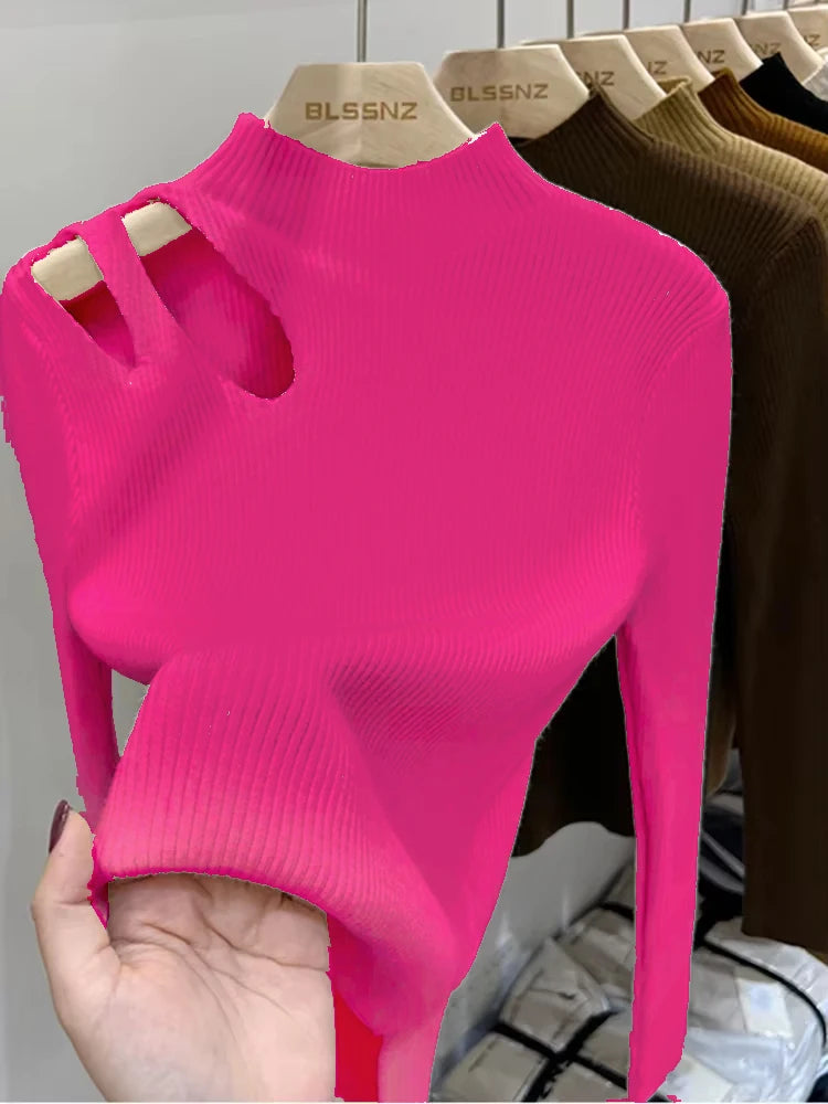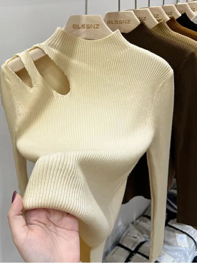 2026 Turtleneck Knitted Women Sweater Ribbed Pullovers Autumn Winter Basic Women Sweaters Fit Soft Warm Tops